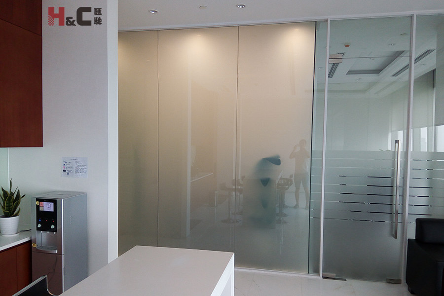 創(chuàng)興銀行的辦公室隔斷應(yīng)用了我公司的智能調(diào)光玻璃。