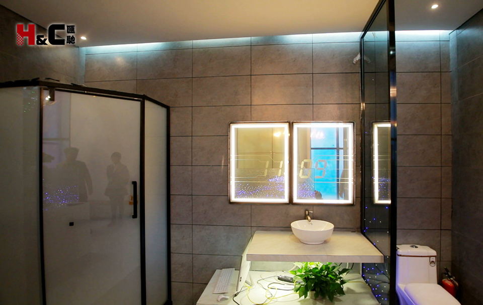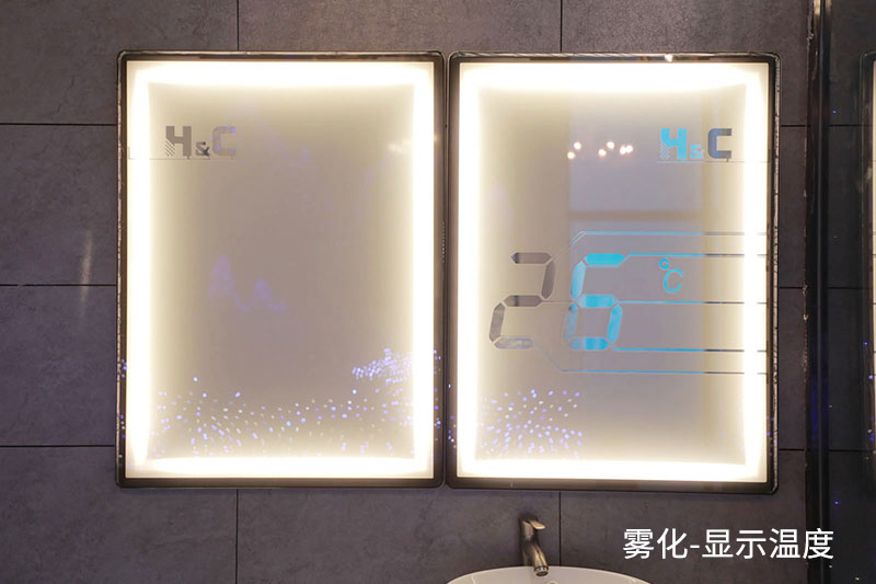 在鏡子上顯示時間、溫度,這是調光膜的一種特殊應用。一般情況下,鏡子上交替呈現當前的時間和室內溫度。當有人站在鏡子前面的時候,時間和溫度自動消失,它就變成了普通的鏡子。鏡子周圍的燈光可通過手勢來打開和關閉,非常方便。