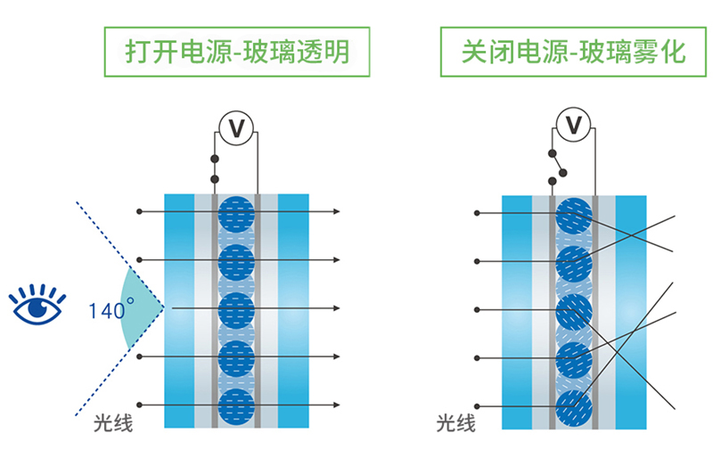 霧化玻璃,顧名思義,它是一種可以變霧化的玻璃,也有人稱之為調(diào)光玻璃、電霧玻璃。霧化狀態(tài)是霧化玻璃的常態(tài),通過電后它會立即變成透明狀態(tài)。狀態(tài)的變化是一種物理變化,即玻璃中的液晶分子由不規(guī)則排列變成規(guī)則排列。