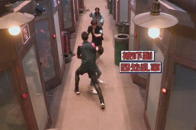 霧化玻璃突然間變透明,里面顯現出好多恐怖的人臉,兇狠地敲打著玻璃。“沒有一點點防備,也沒有一絲顧慮,你就這樣出現……”這一切來得太突然,嘉賓們被嚇得抱頭鼠竄,真是是讓觀眾們又好笑又心疼。