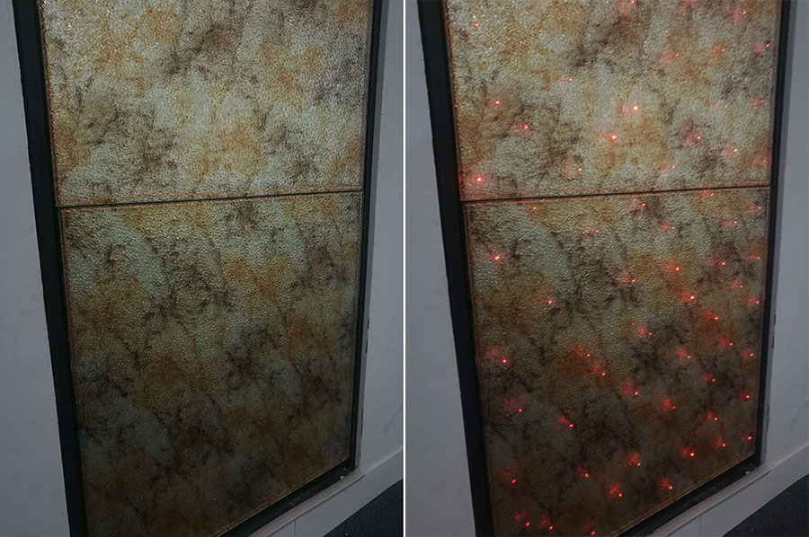 同一位置 LED發(fā)光玻璃不發(fā)光和發(fā)光的效果